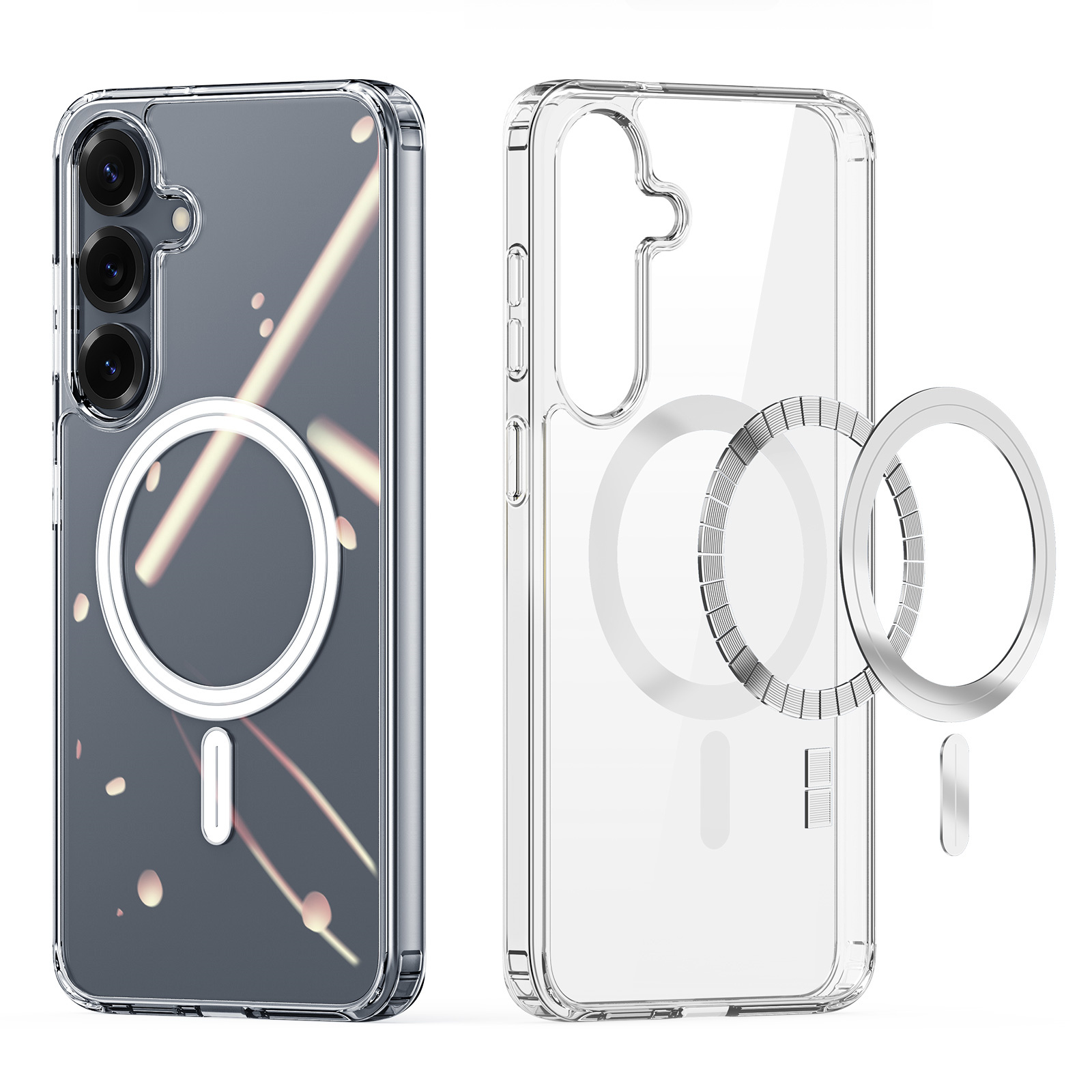 Clin Mag Series поєднує прозору естетику з сучасним функціональним дизайном. Чохол має кришталево чисту задню панель, яка підкреслює оригінальний вигляд смартфона, зберігаючи його стильний вигляд. Завдяки акуратному профілю та продуманим вирізам, чохол щільно охоплює пристрій, не ускладнюючи доступ до елементів керування. Додатковий акцент зроблено на захисті — кути підсилені спеціальними елементами для поглинання ударів, а виступ навколо блоку камер мінімізує ризик пошкоджень при контакті з поверхнею.